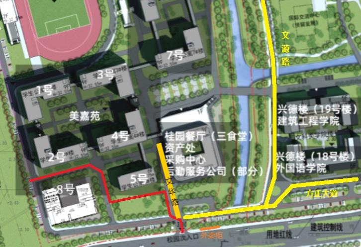 1.工程实施封闭施工:施工场地将实行封闭管理,施工区域四周设立施工围挡,具体封闭范围见附图(红色实线)。为了自身安全,请广大师生不要进入施工区域。